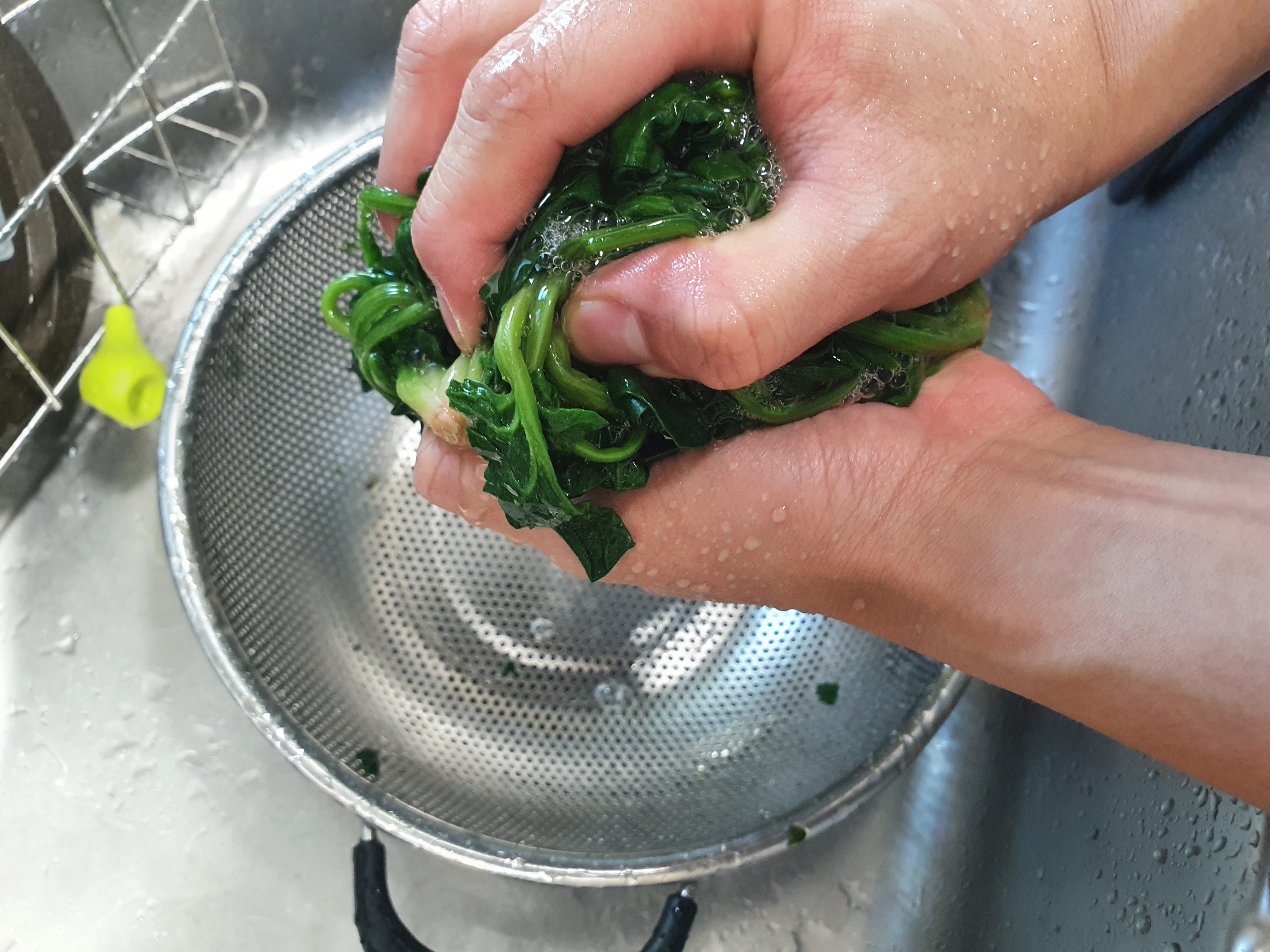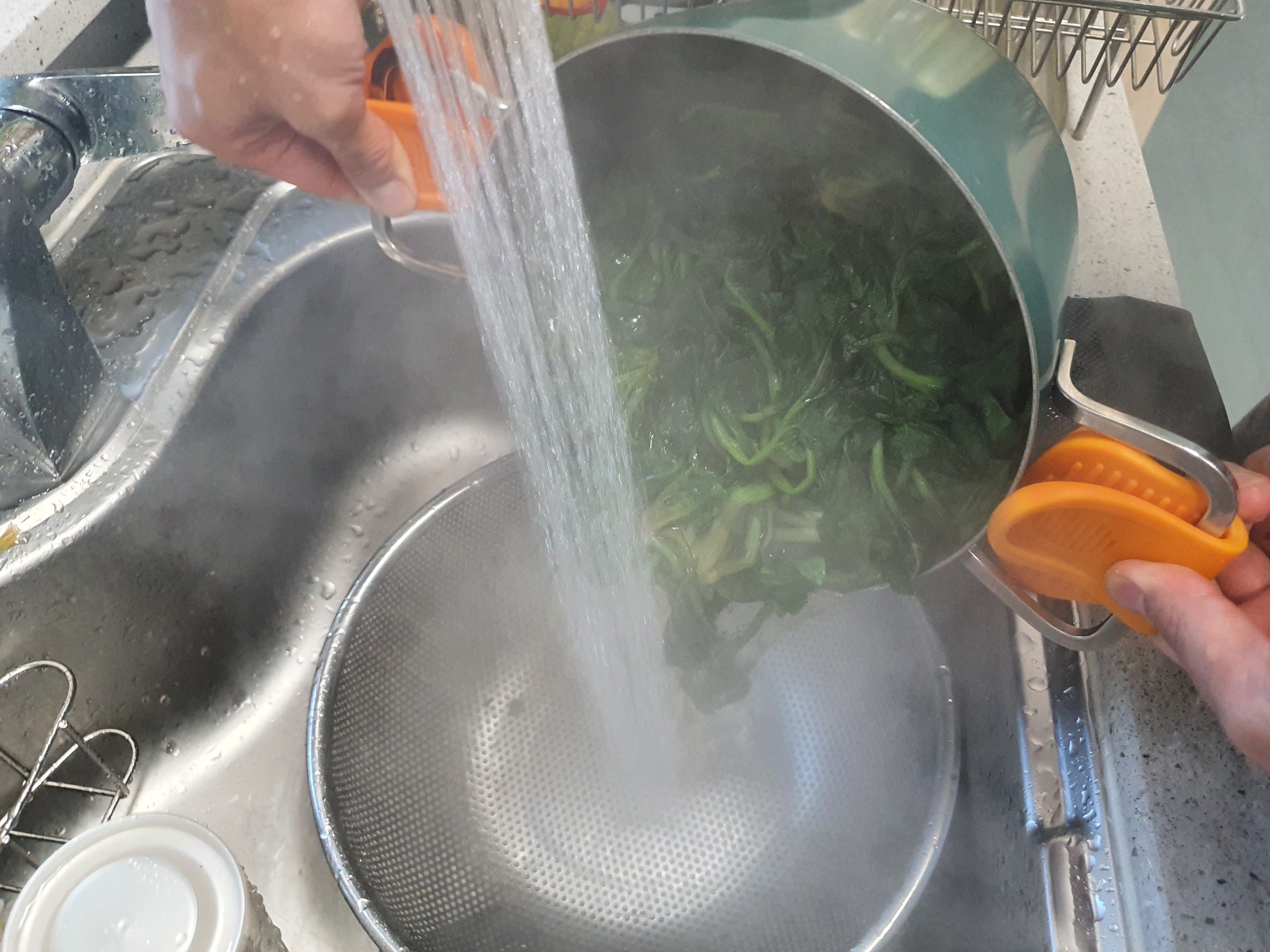 깨끗이 씻지 않으면 흙을 먹을 수도 있고 시금치는 정말 조금 데칠것이기에 깨끗이 씻어줍니다.