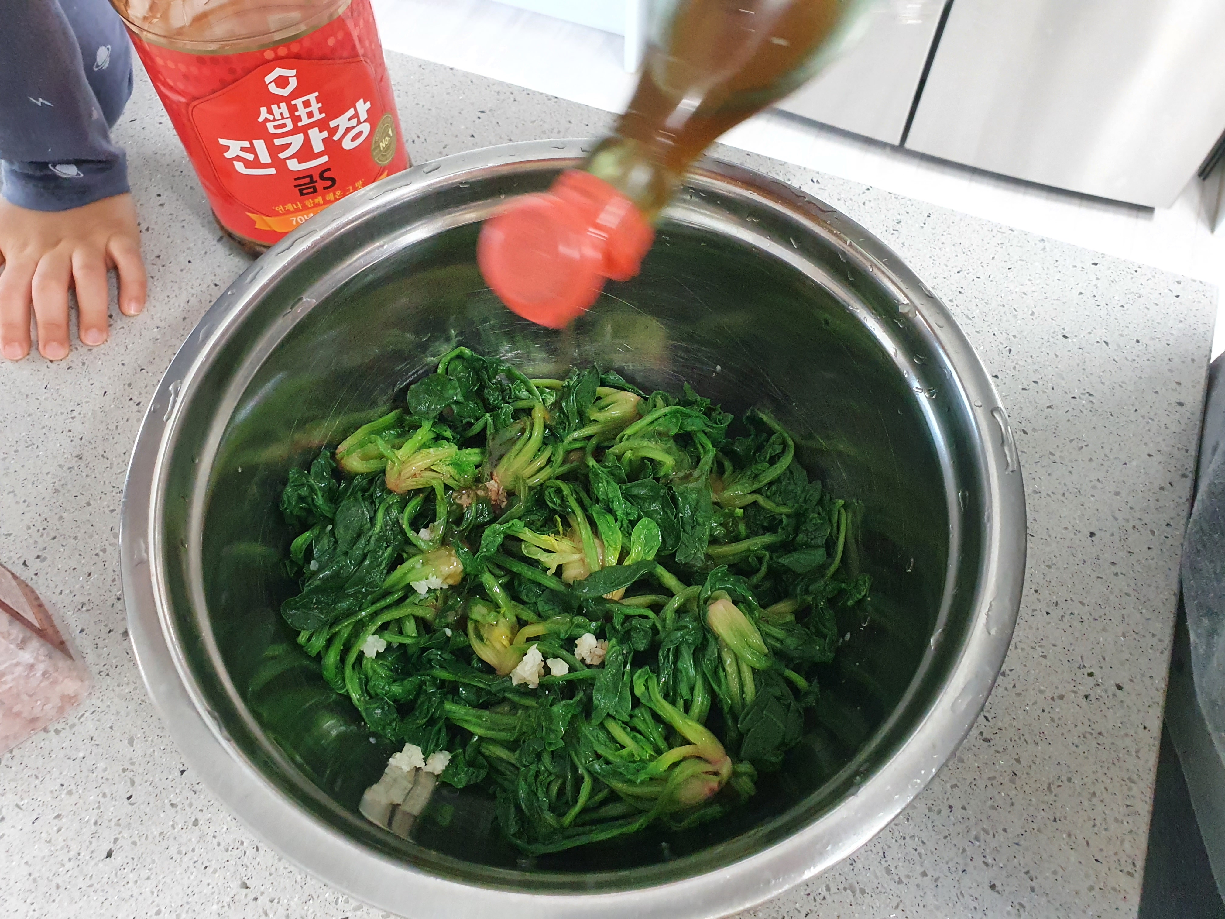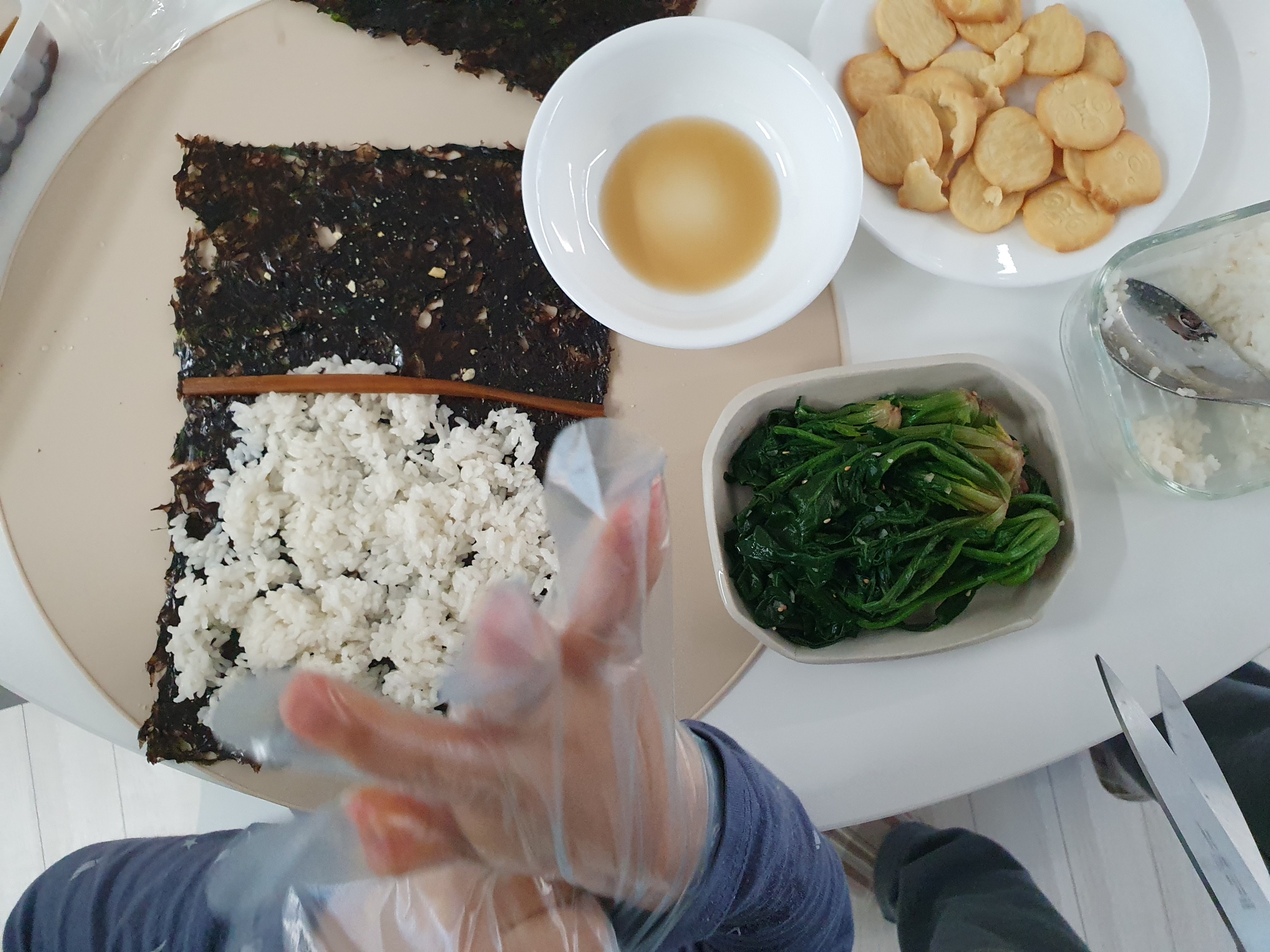 시금치 무침을 하니 아이가 김밥을 싼다고 합니다. 간단하게 시금치 무침만 하려다 일이 더 커졌습니다. 요리의 재미입니다.
