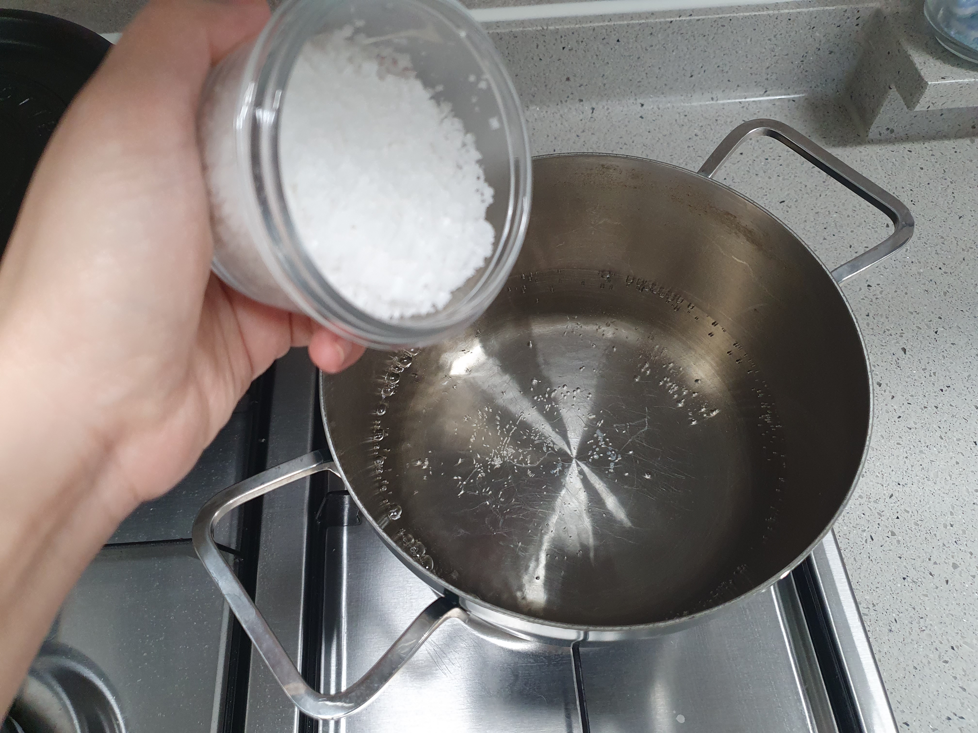 물 1000ml 넣고, 굵은소금을 한소금 넣어주었습니다.