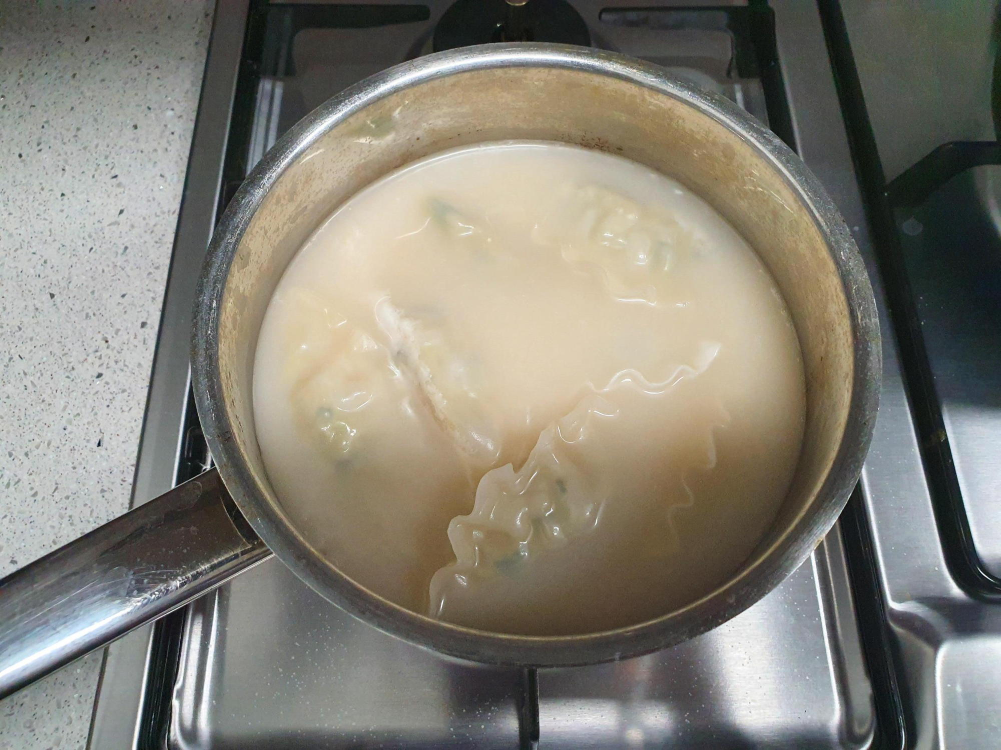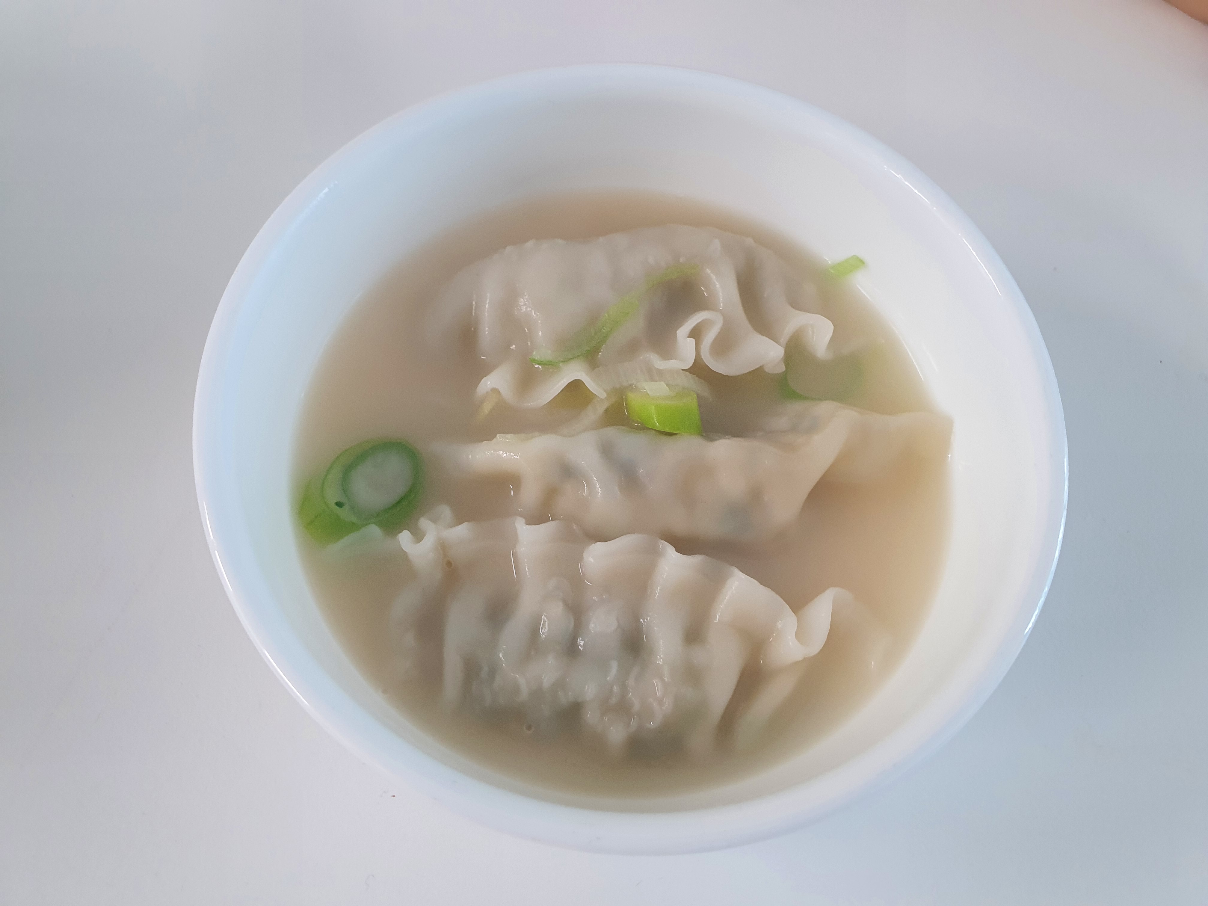 10분 안에 맛있는 만두국이 완성되었습니다.