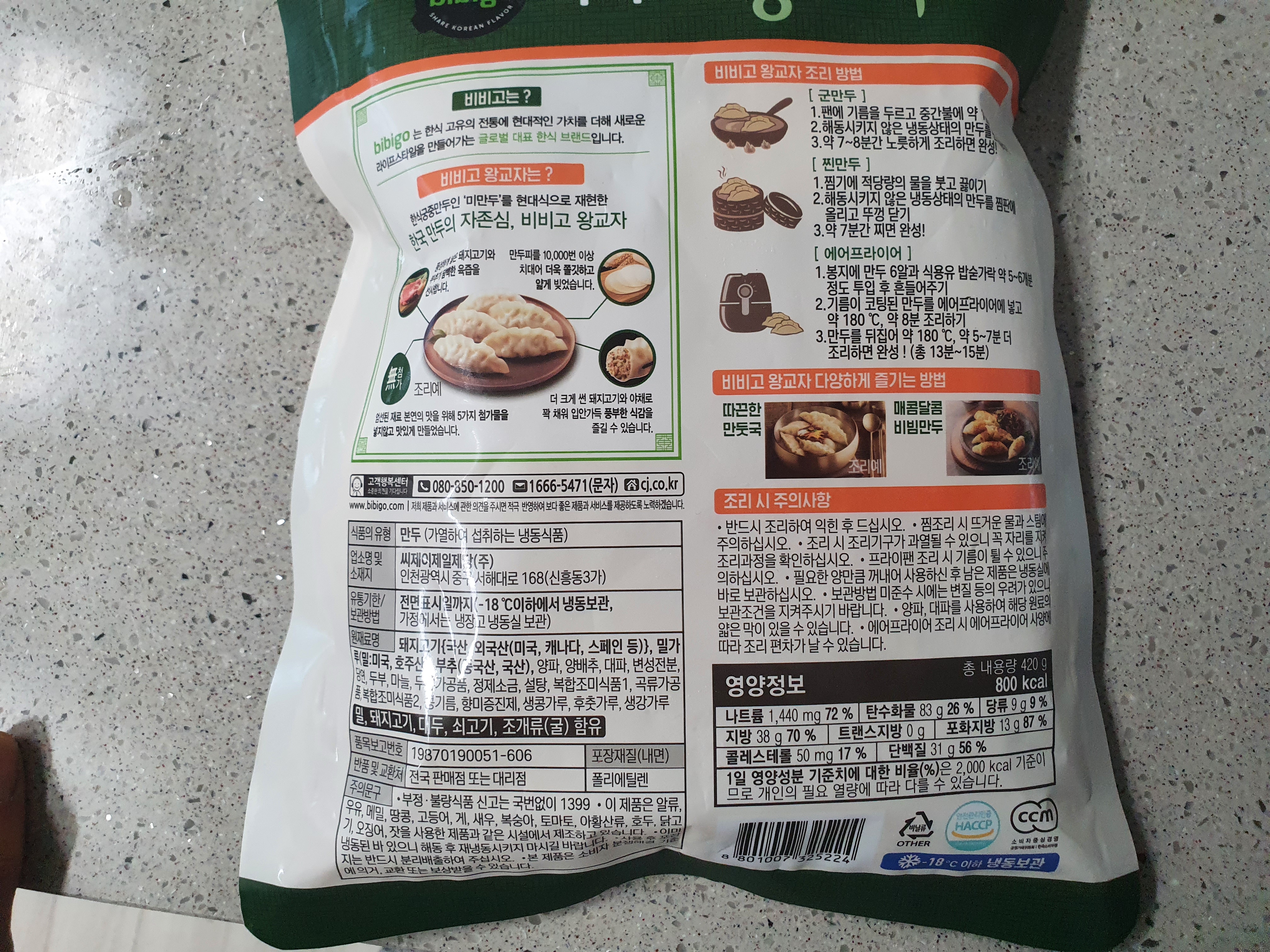 다음으로 우리 가족 최애 만두 비비교 왕교자 입니다.