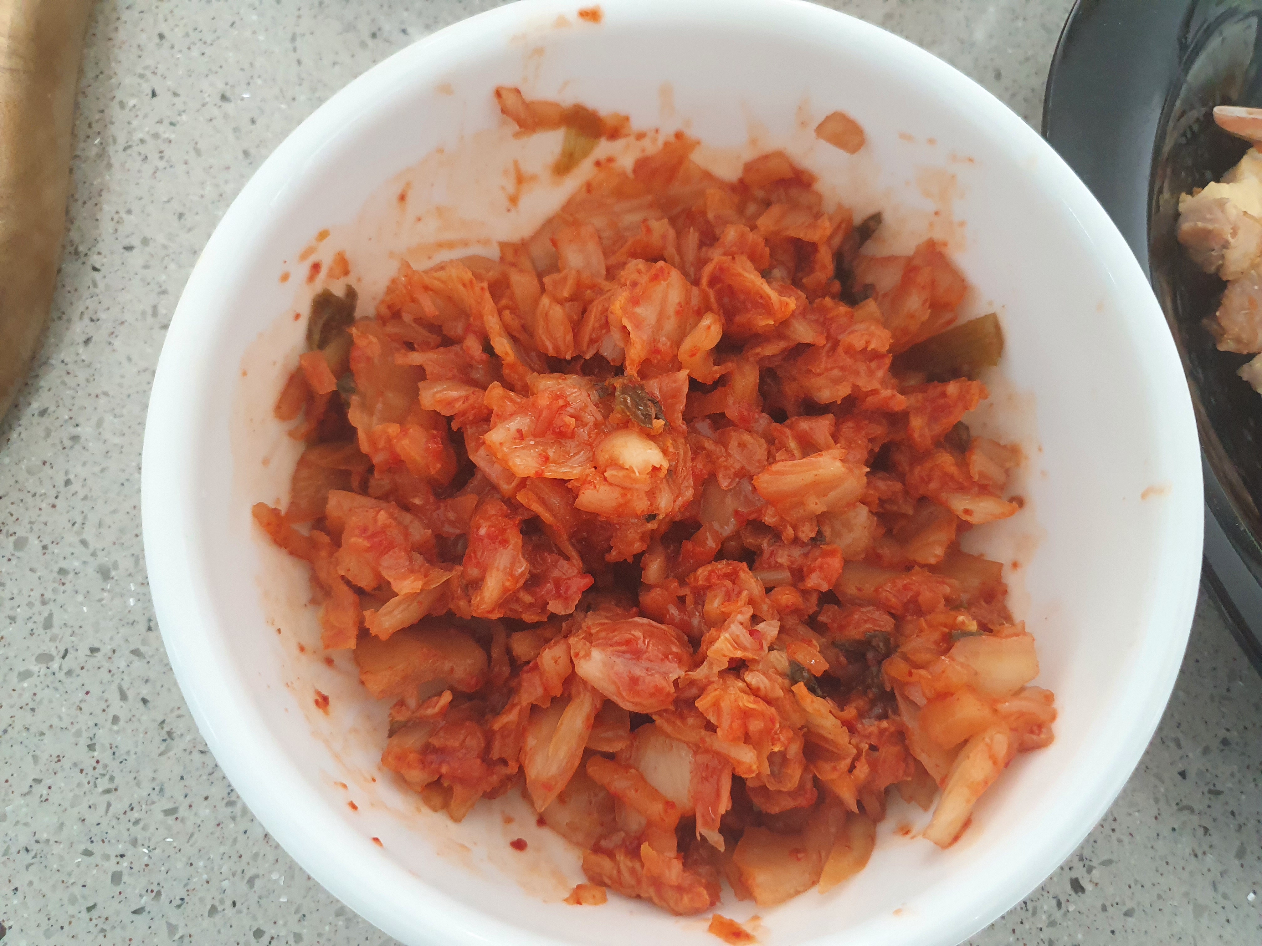 일단 김치를 가위로 대충대충 작은 크기로 잘라줍니다.