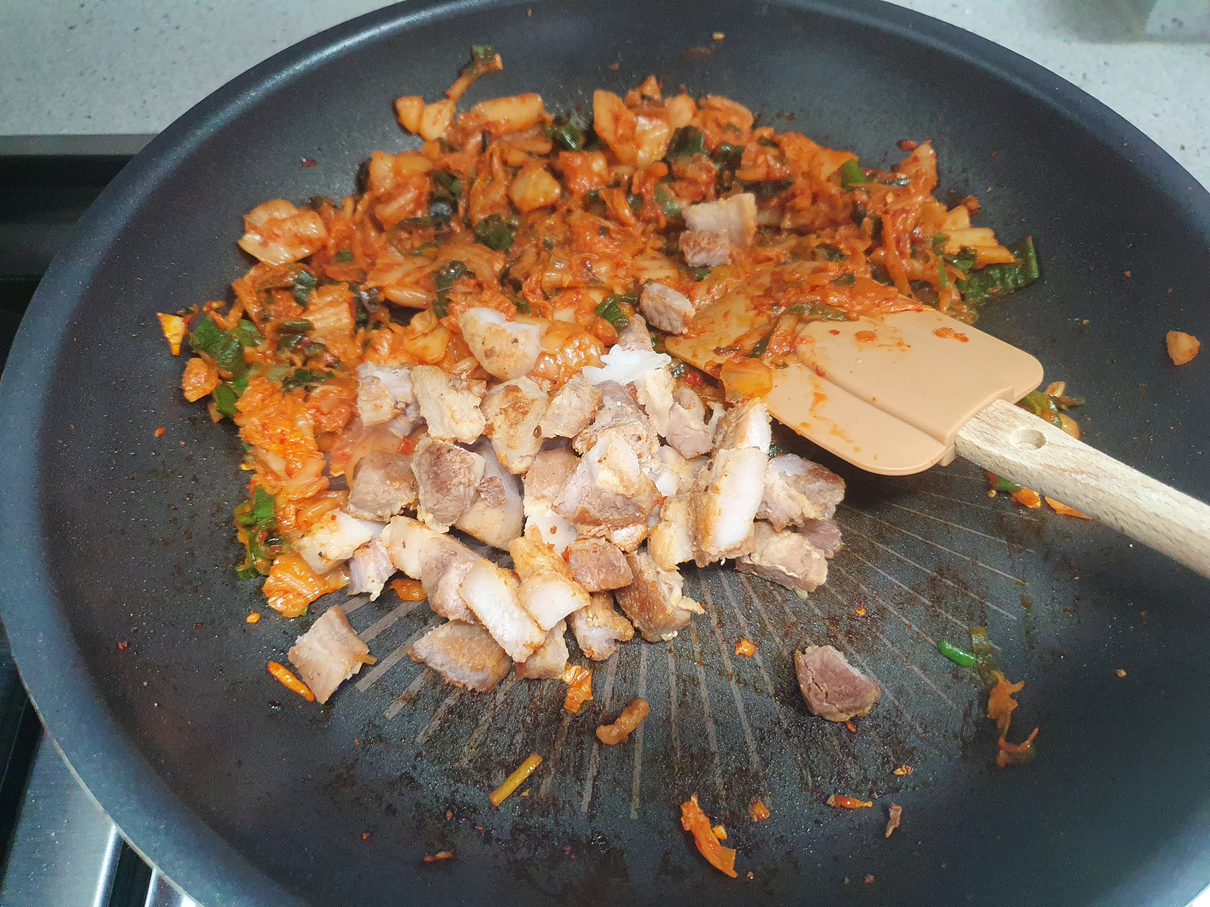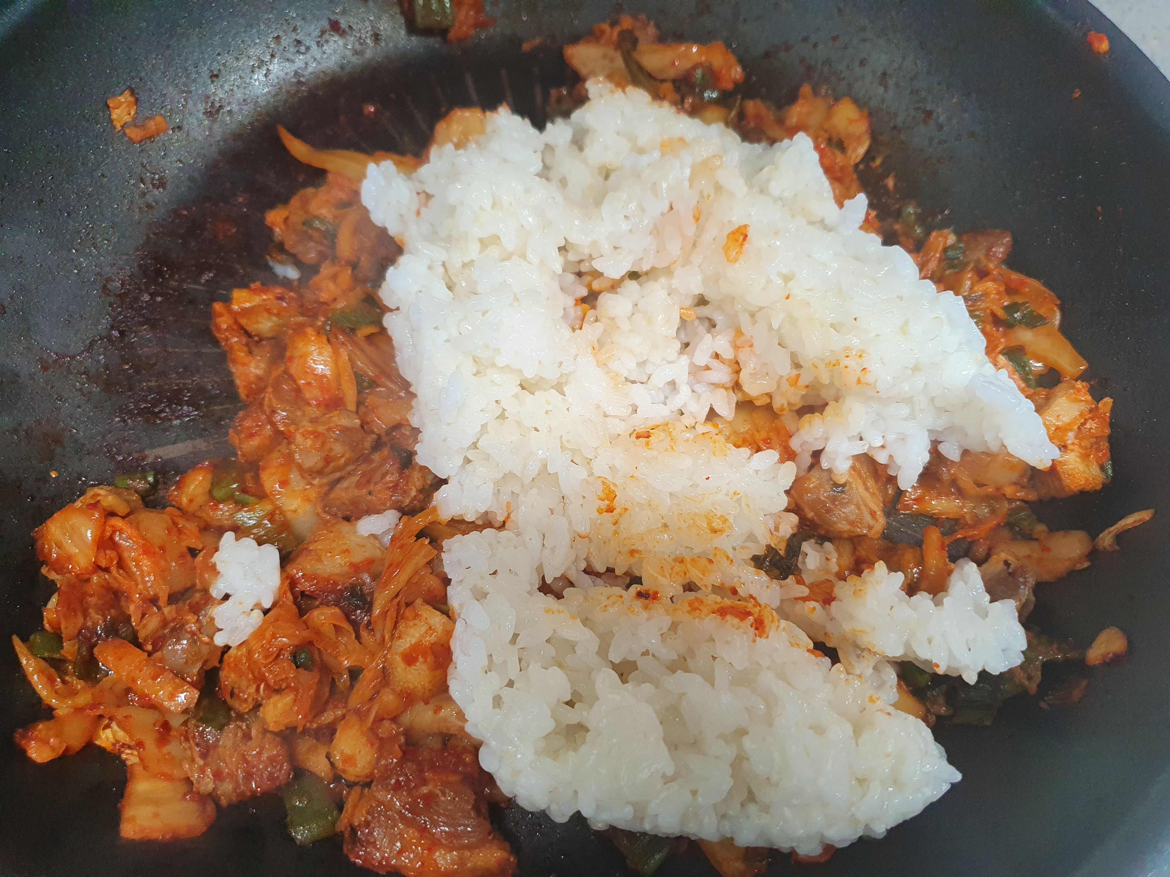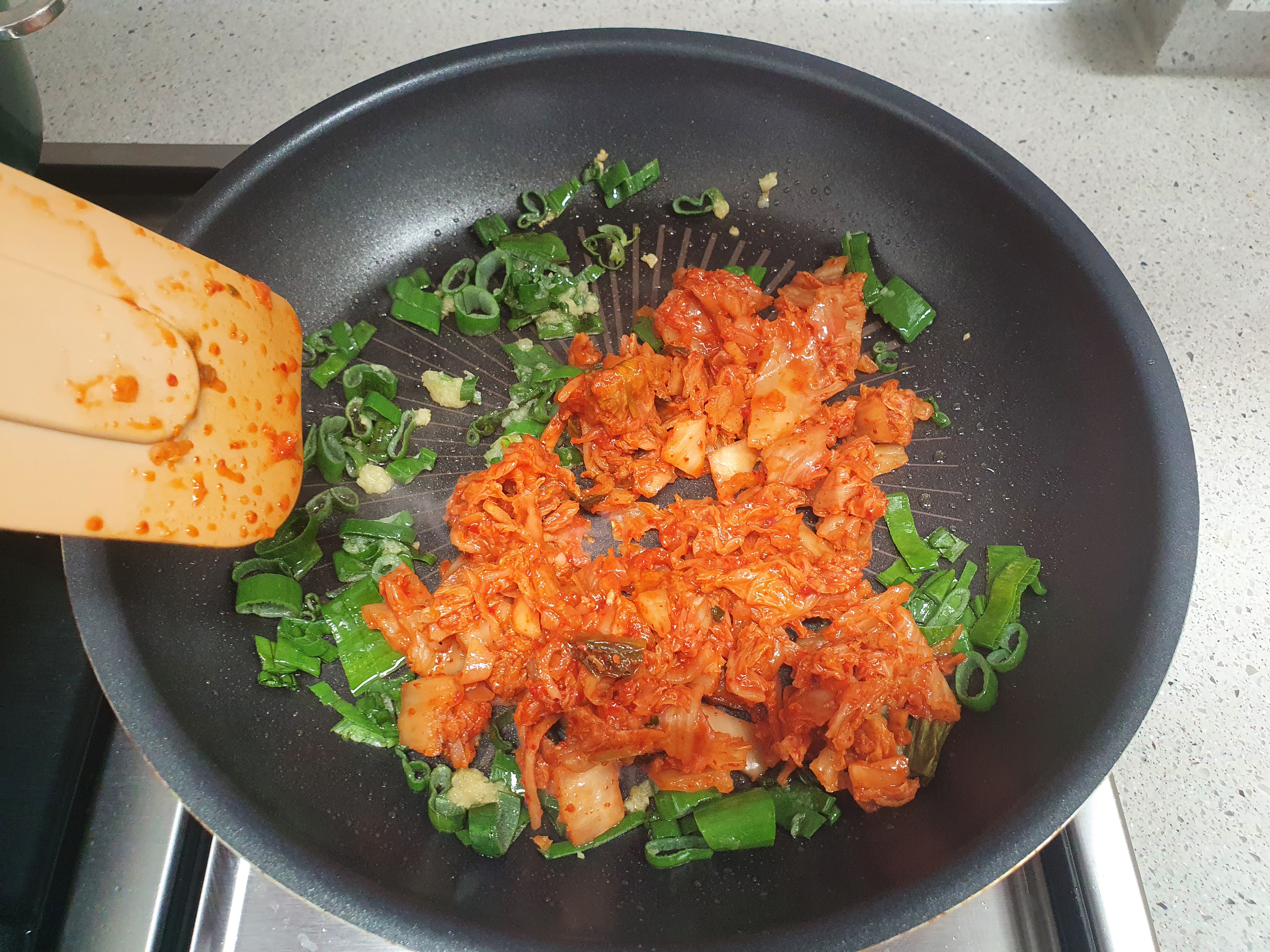 김치를 넣어주고 볶아줍니다.