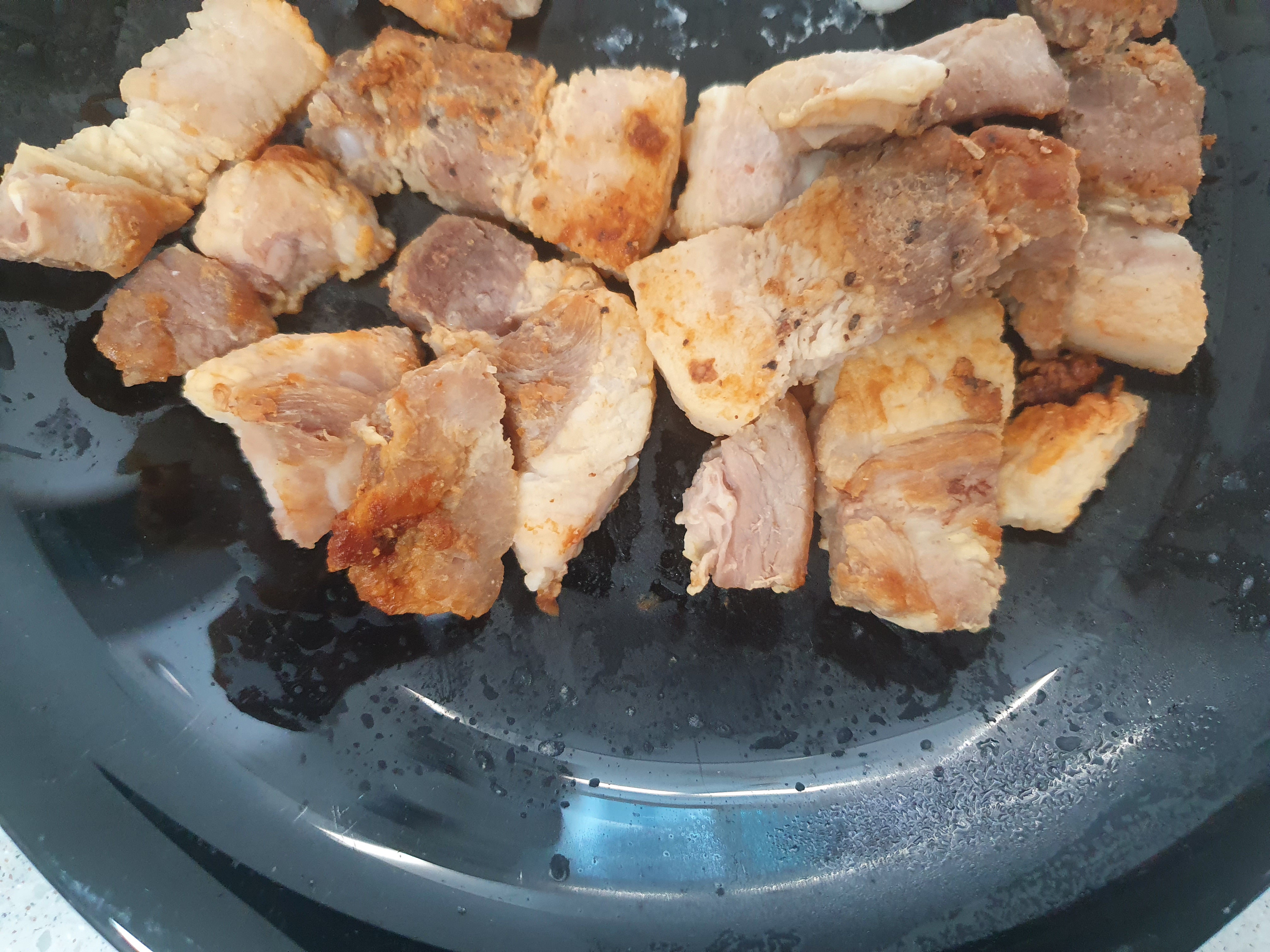 어제 먹다 남은 삼겹살을 투하합니다.