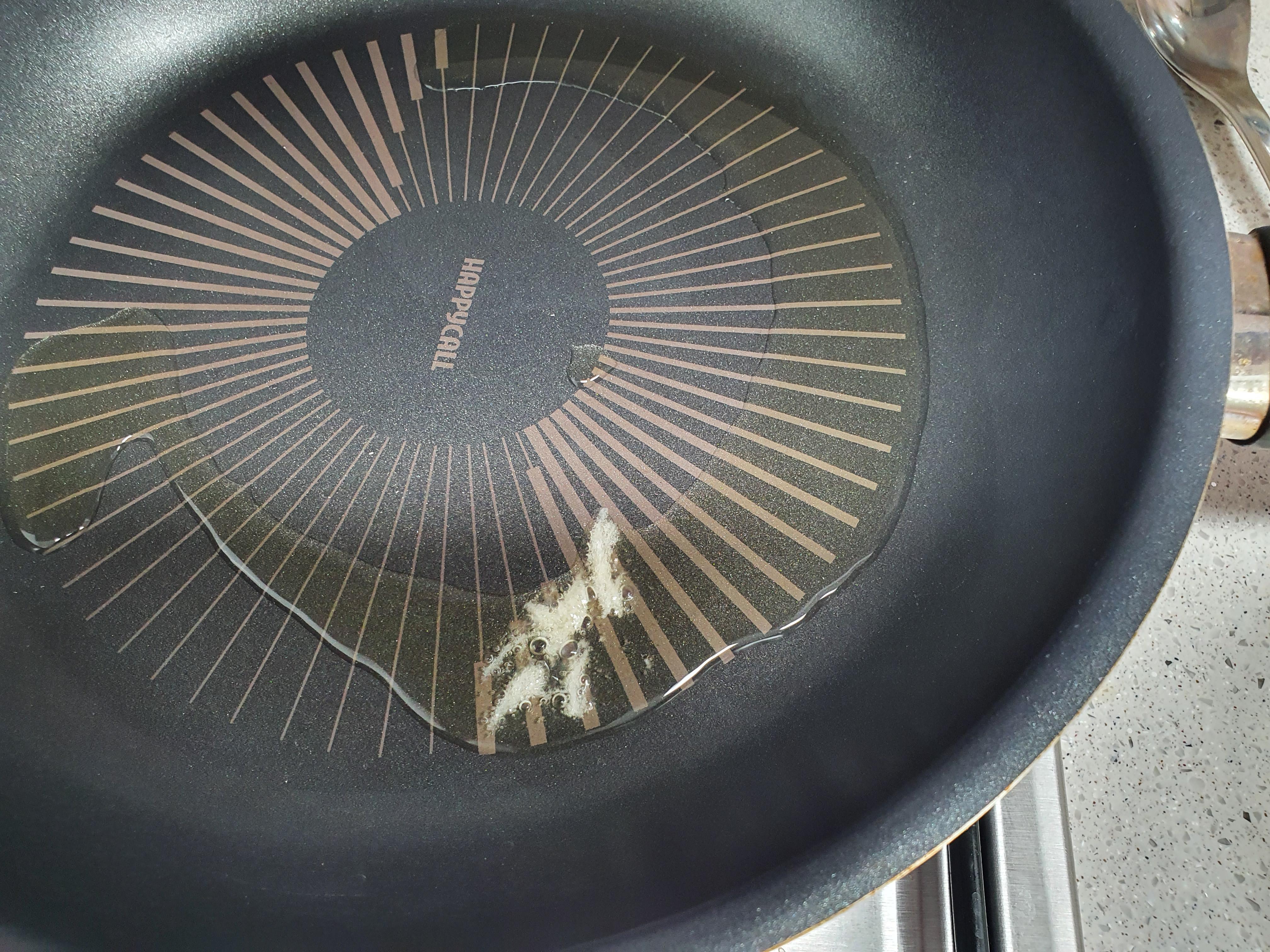 빵가루를 떨어뜨려 온도를 확인한 후에,